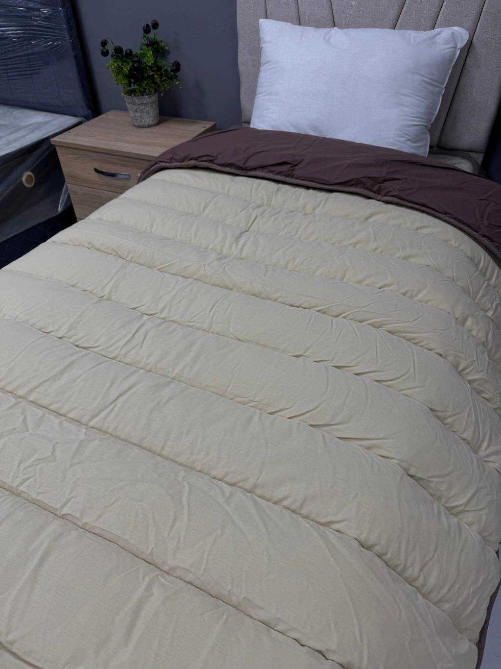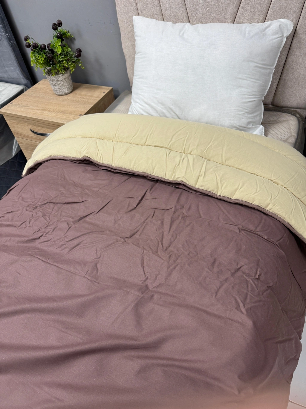 %100 Pamuk Tek kişilik Yorgan Çift Taraflı Kahve-Kapuçino Düz Desenli Kapitoneli % 100 Pamuktan üretilmiştir.; 57 Tel iplikten üretilmiştir.; Ebat ve İçerik Tek Kişilik Tek yorgan bulunmaktadır.; Takım değildir.; Yorgan : 155 x 215 SADECE 1 ADET YORGAN İÇERMEKTEDİR Tek Kişilik155 x 215 cmKullanım TalimatlarıElde veya çamaşır makinasında 30° de yıkayınız.; Islak bekletmeyiniz ve çamaşır suyu kullanmayınız.; Düşük devirde tamburlu kurutucuda kurutabilirsiniz.