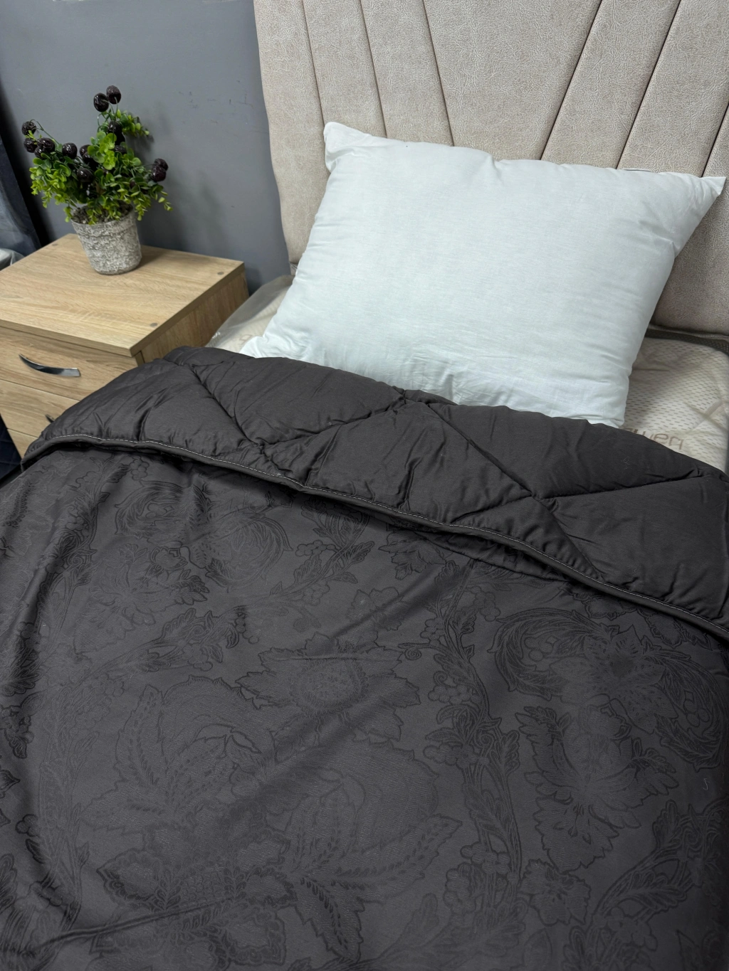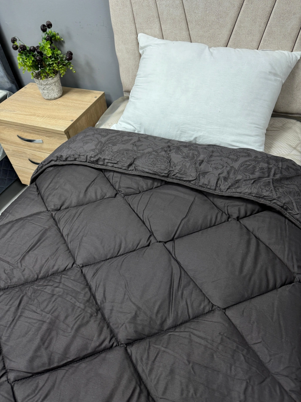 Clasy %100 Pamuk Saten Çift kişilik Yorgan Çift Taraflı Noldor V1 Desenli Antrasit Gri Kapitoneli