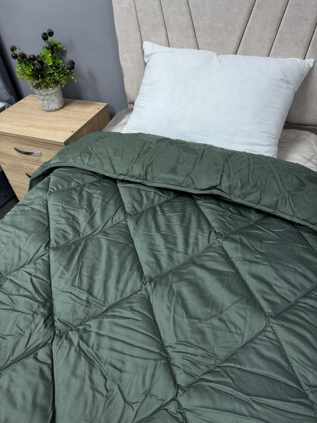 Clasy %100 Pamuk Ranforce Çift kişilik Yorgan Çift Taraflı Osela V5 Yeşil Düz Desenli Kapitoneli