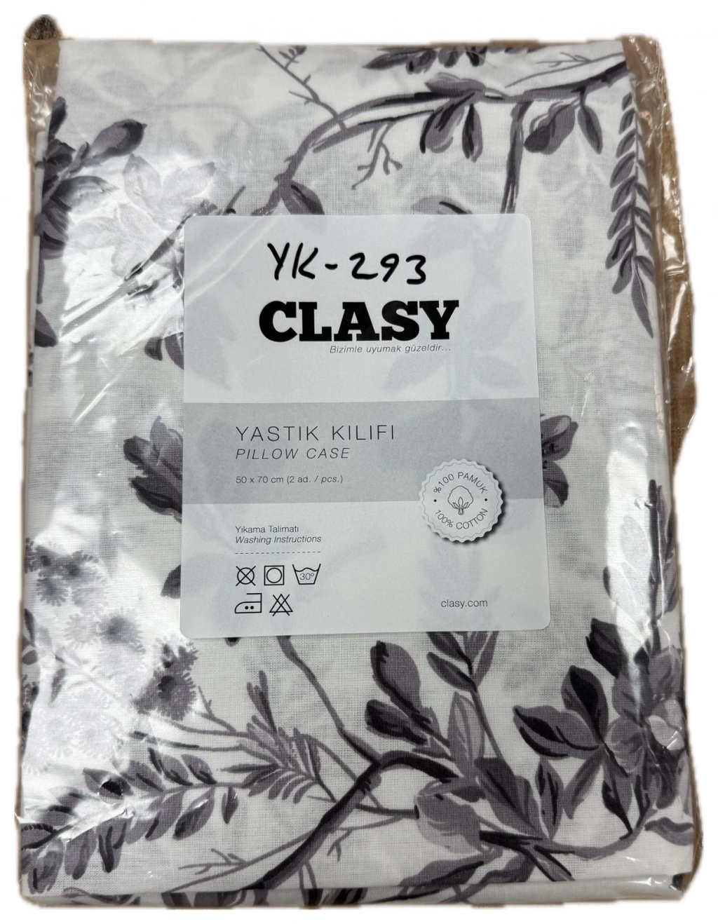 Clasy Ranforce %100 Pamuk 2 Adet Yastık Kılıfı Desenli Siyah