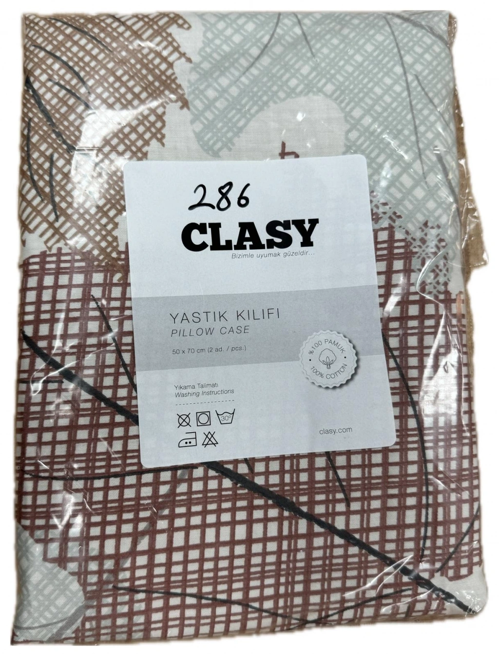 Clasy Ranforce %100 Pamuk 2 Adet Yastık Kılıfı Desenli Kahverengi