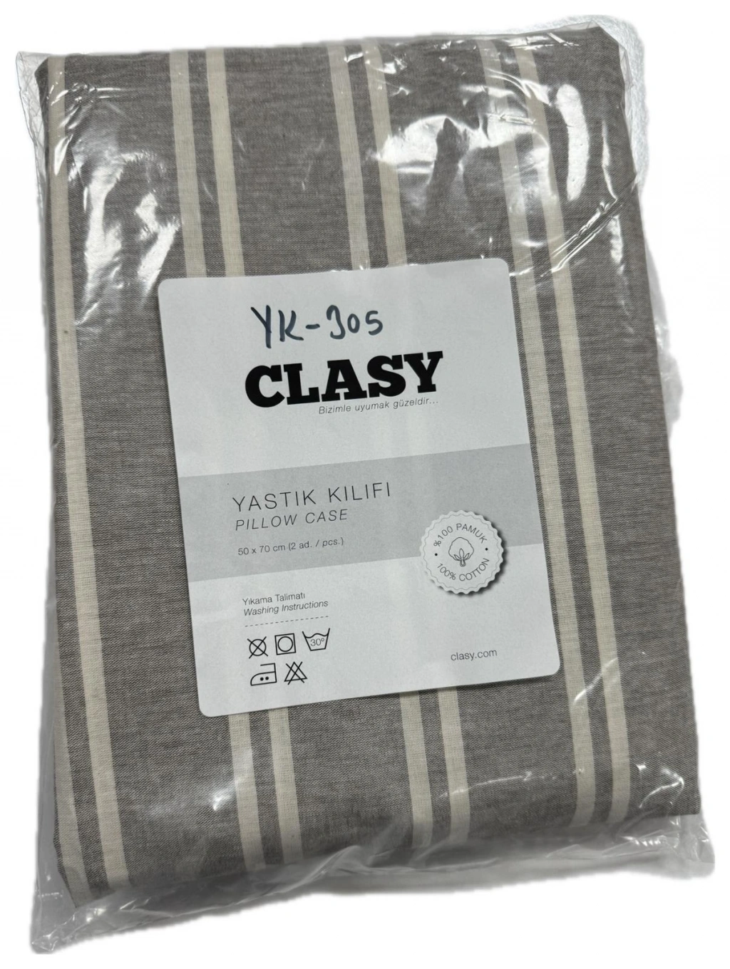 Clasy Ranforce %100 Pamuk 2 Adet Yastık Kılıfı Çizgili Desen Gri