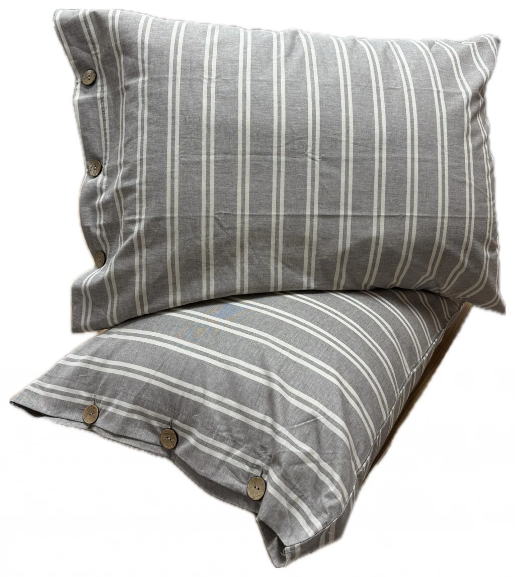 Clasy Ranforce %100 Pamuk 2 Adet Yastık Kılıfı Düğmeli Çizgili Gri