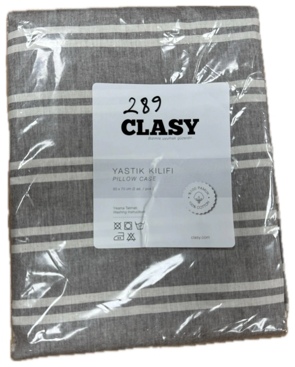 Clasy Ranforce %100 Pamuk 2 Adet Yastık Kılıfı Çizgili Gri