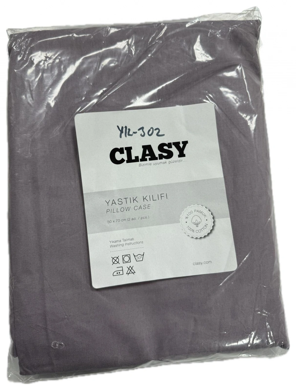 Clasy Ranforce %100 Pamuk 2 Adet Yastık Kılıfı Düz Desen Mor
