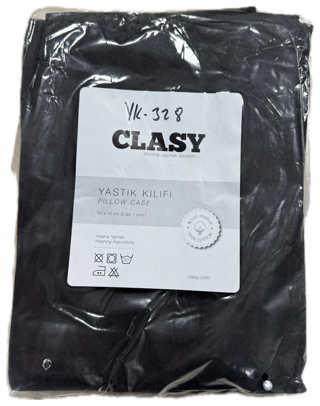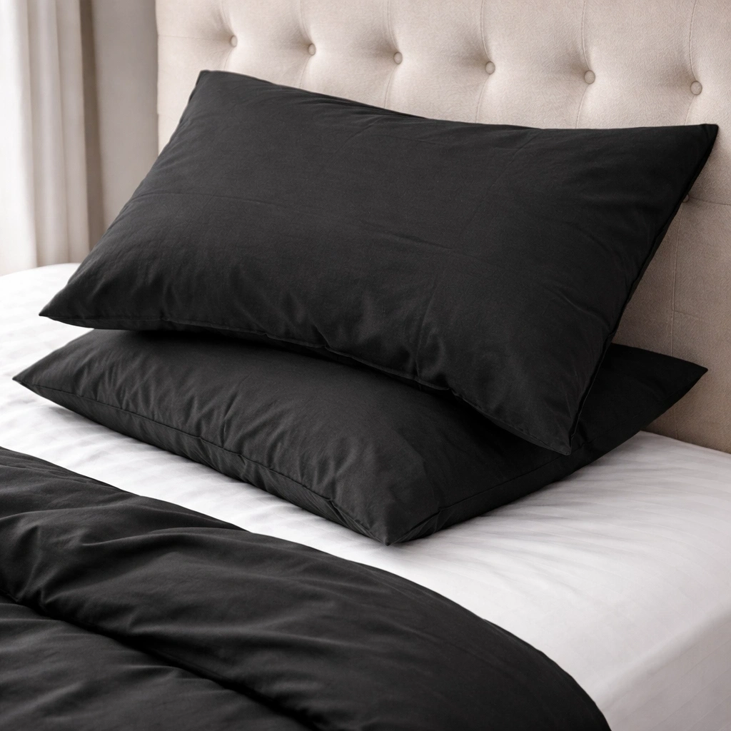 Clasy Ranforce %100 Pamuk 2 Adet Yastık Kılıfı Düz Desenli Siyah