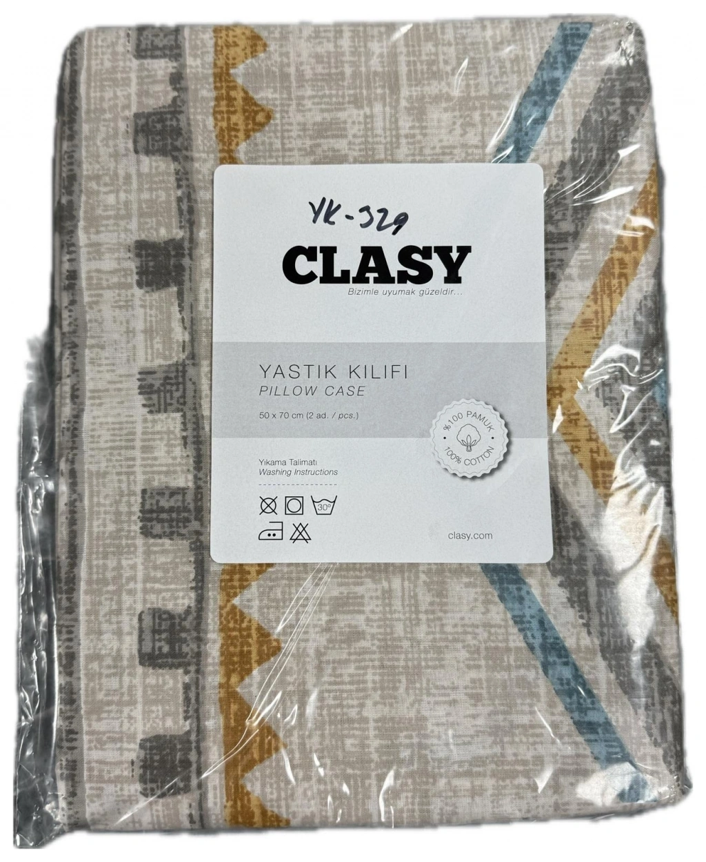 Clasy Ranforce %100 Pamuk 2 Adet Yastık Kılıfı Karışık Desenli Bej