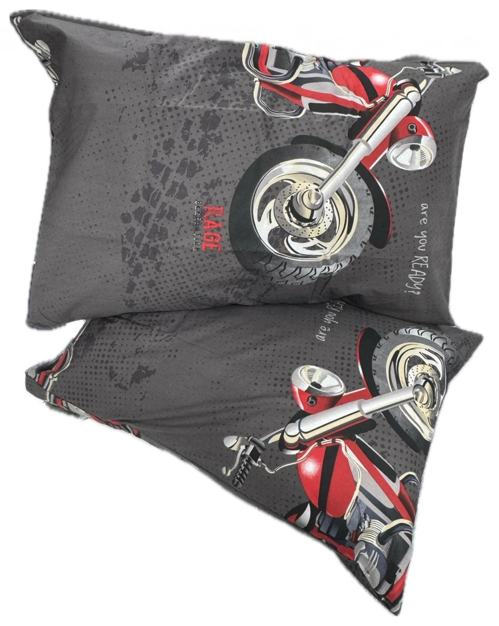 Clasy Ranforce %100 Pamuk 2 Adet Yastık Kılıfı Motor Desenli Antrasit