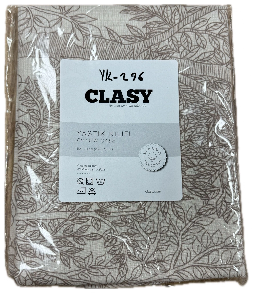 Clasy Ranforce %100 Pamuk 2 Adet Yastık Kılıfı Desenli Kahverengi