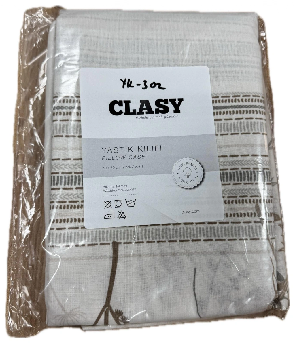 Clasy Ranforce %100 Pamuk 2 Adet Yastık Kılıfı Desenli Kahverengi