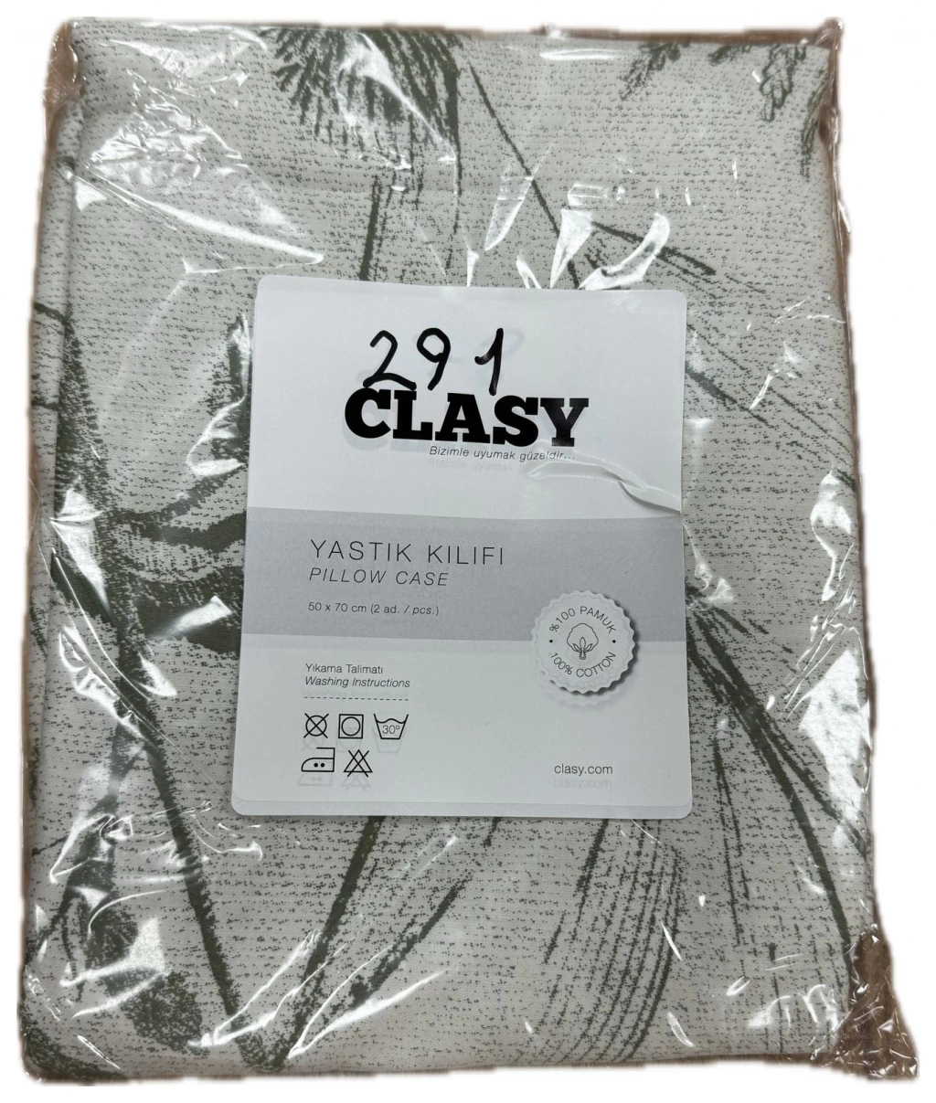Clasy Ranforce %100 Pamuk 2 Adet Yastık Kılıfı Yaprak Desenli Bej