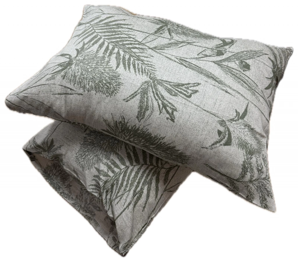 Clasy Ranforce %100 Pamuk 2 Adet Yastık Kılıfı Yaprak Desenli Yeşil
