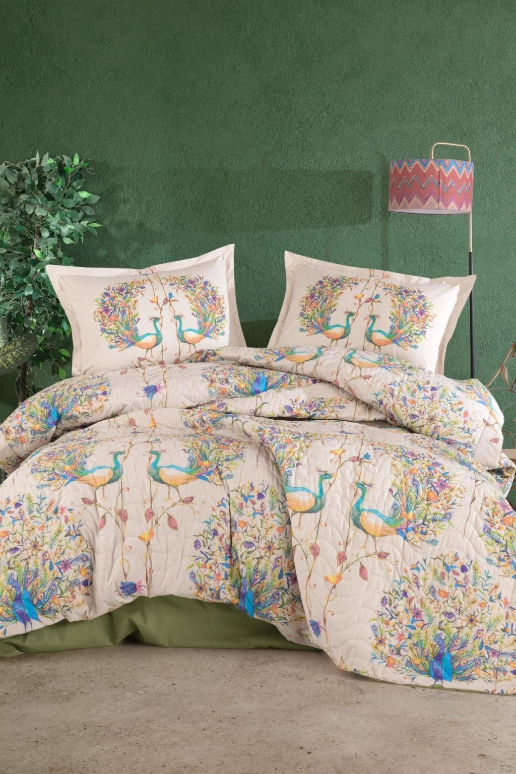 Clasy Ranforce %100 Pamuk Çift Kişilik Dört Mevsim Set Pavone V1 Yeşil