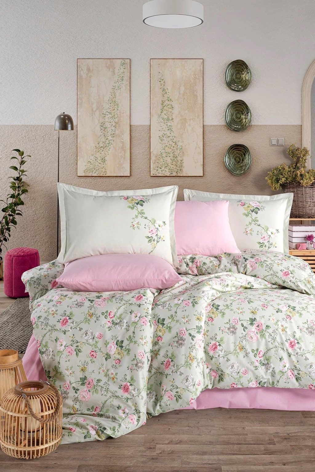 Clasy Ranforce %100 Pamuk Çift Kişilik Nevresim Takımı Elara V1 Pembe