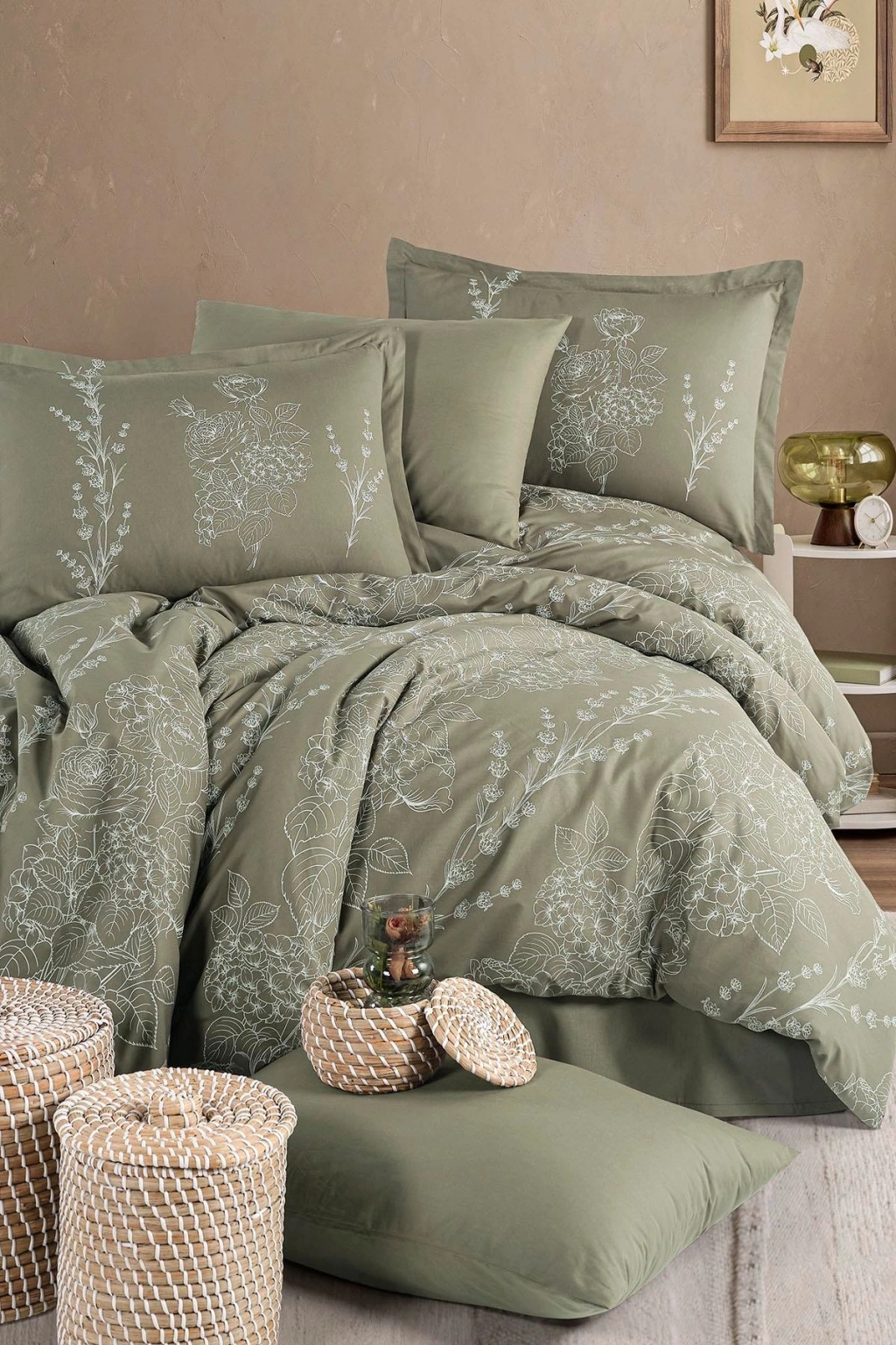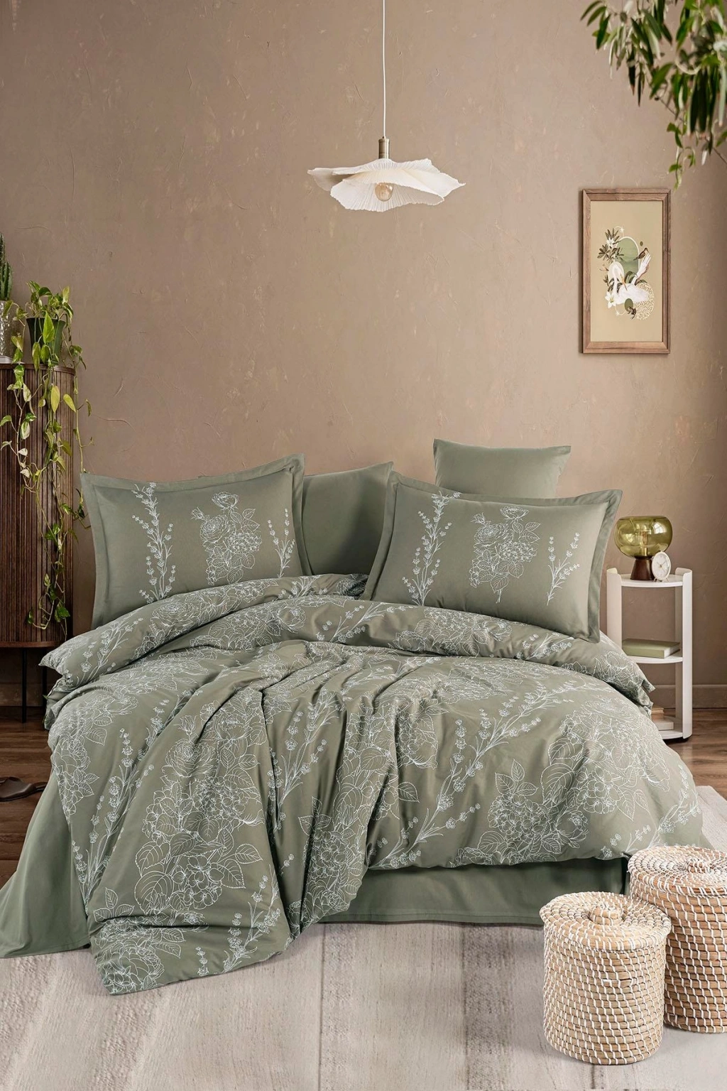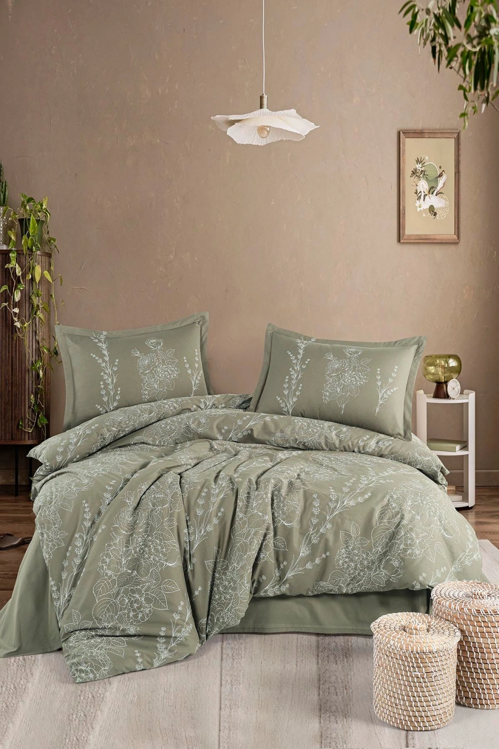 Clasy Ranforce %100 Pamuk Çift Kişilik Nevresim Takımı Vinya V1 Yeşil