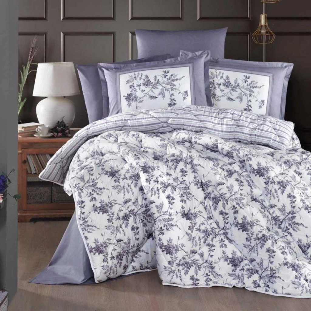 - Set içeriği; rahat bir uyku deneyimi sunan Çift kişilik yorgan, lastikli çarşaf ve yastık kılıfından oluşur.