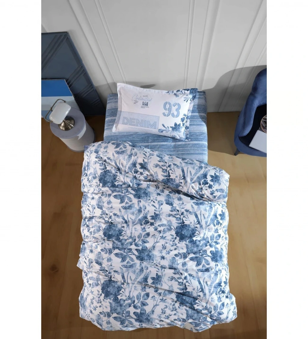 Clasy Ranforce %100 Pamuk Tek Kişilik Nevresim Mavi V1 Mavi