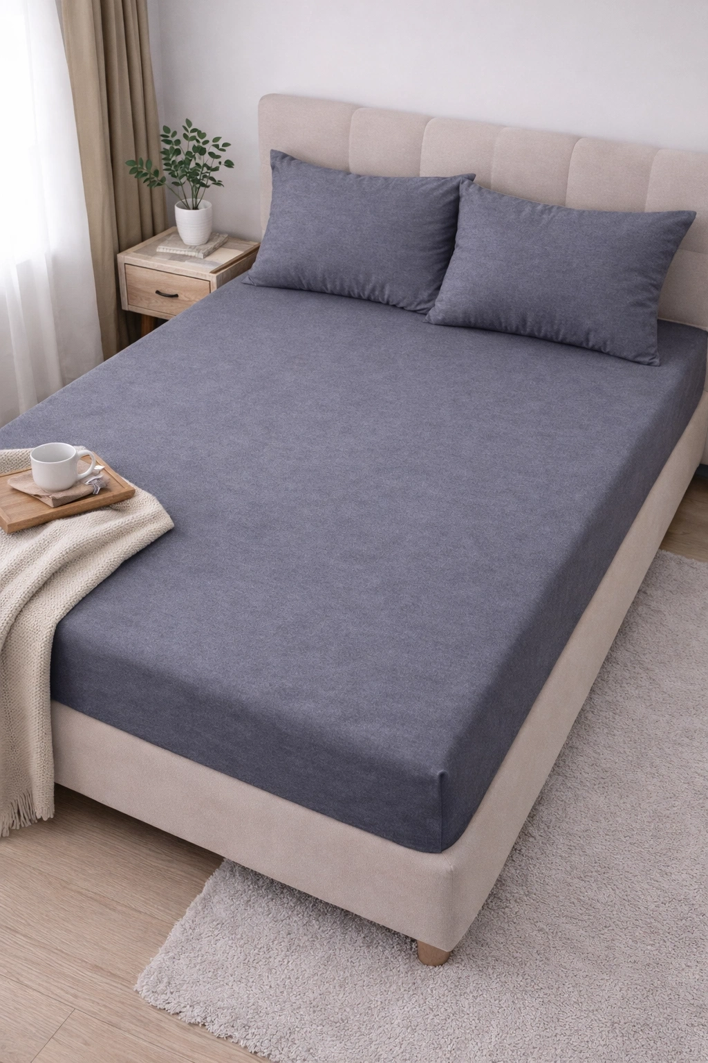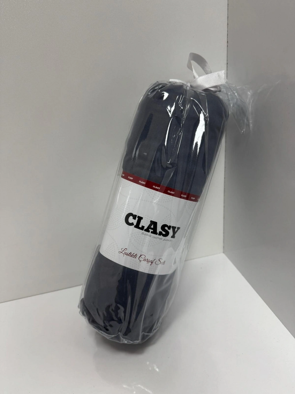 Clasy Ranforce Lastikli Çarşaf Seti Çift Kişilik Antrasit Gri-Mavi ÇKLÇ-268 %100 Pamuk