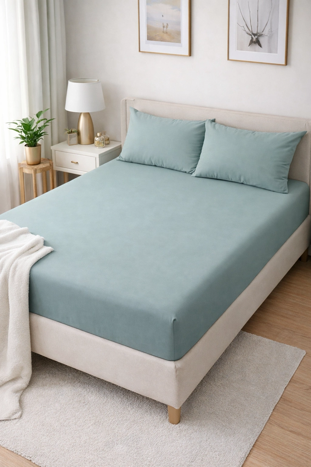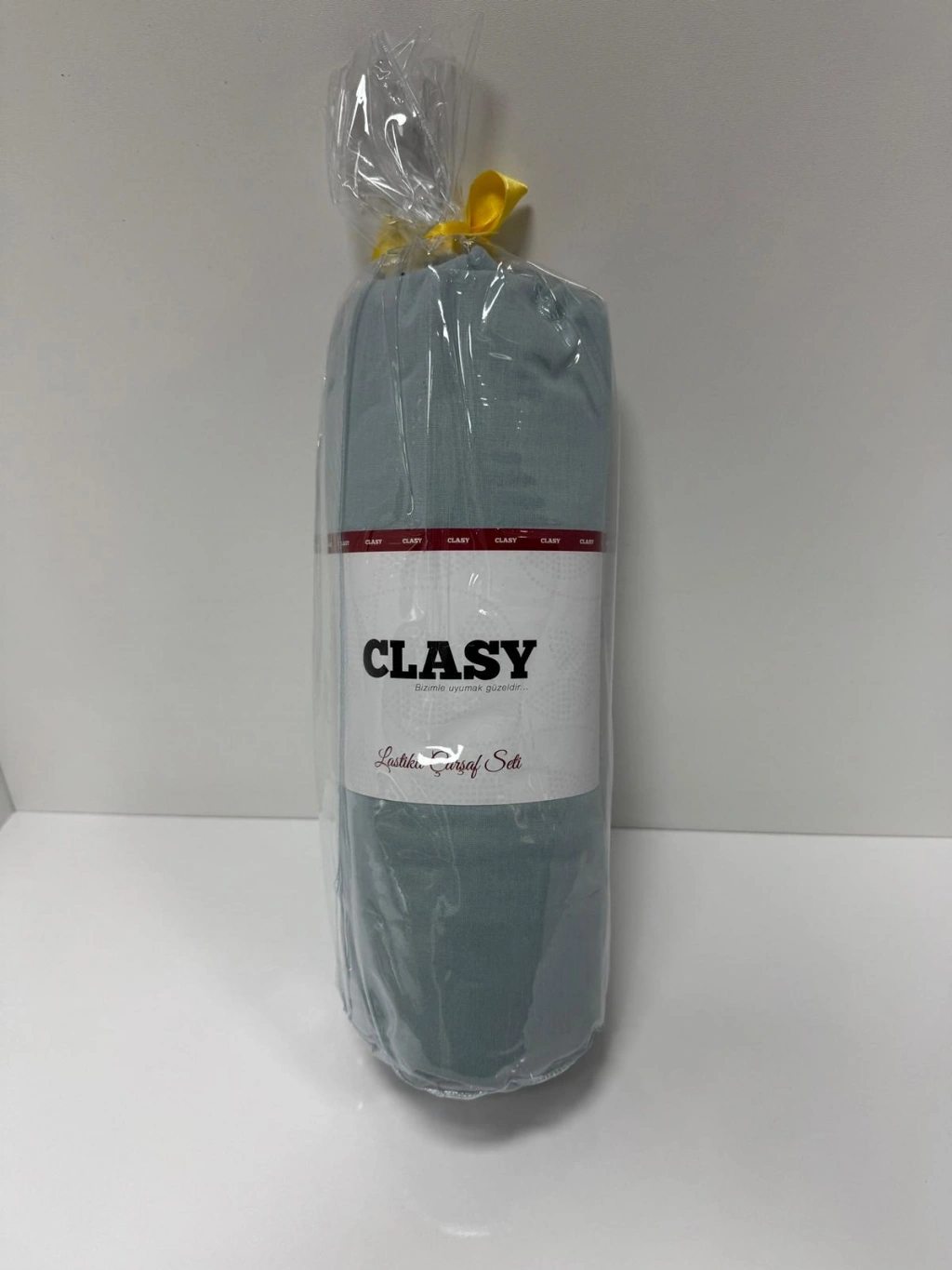 Clasy Ranforce Lastikli Çarşaf Seti Çift Kişilik Buz Mavisi ÇKLÇ-242 %100 Pamuk