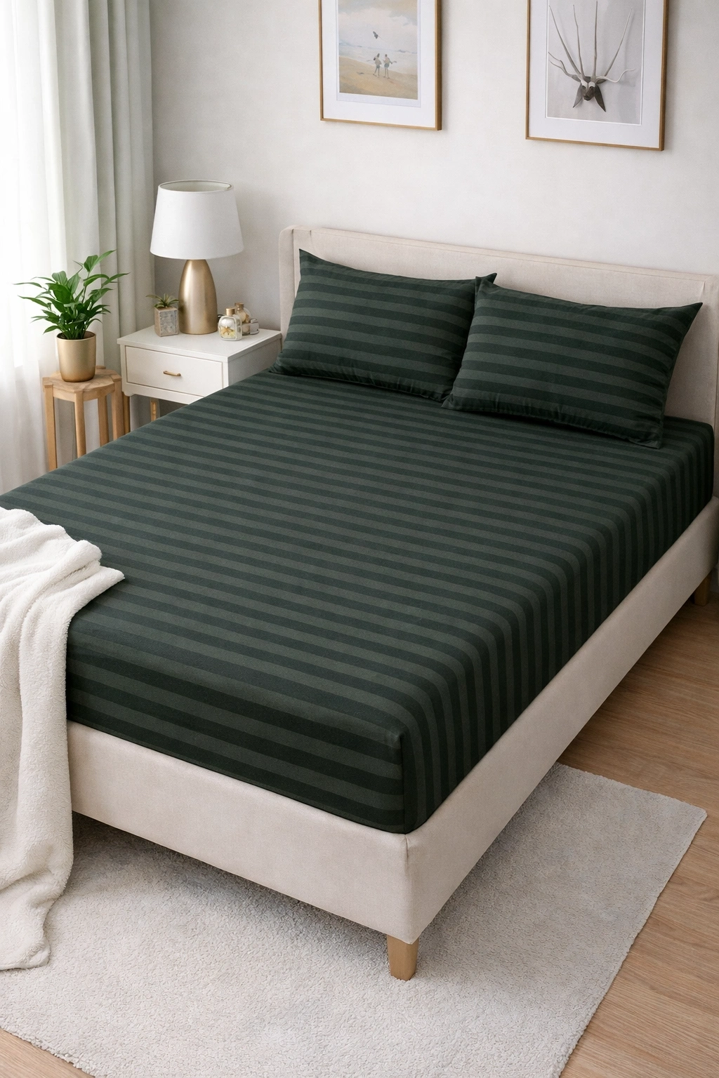 Clasy Ranforce Lastikli Çarşaf Seti Çift Kişilik Koyu Yeşil-Haki ÇKLÇ-248 %100 Pamuk