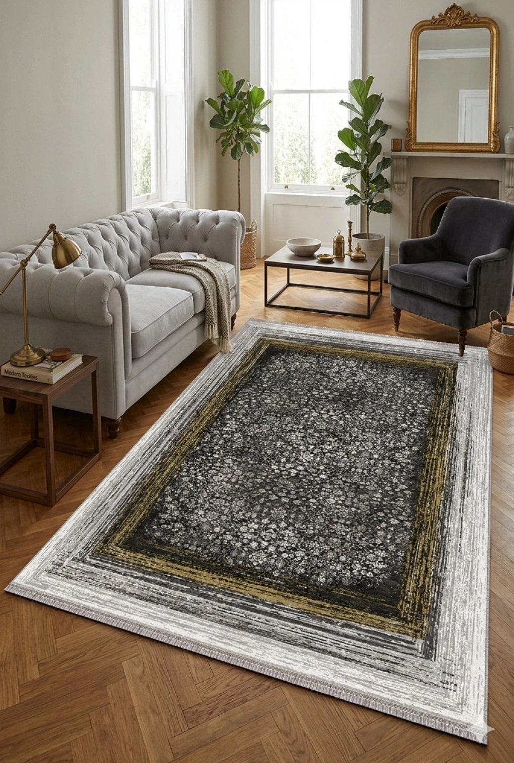 Mess Modern Dekoratif Yumuşak Dokulu Sisal Halı 3946 Gri Siyah