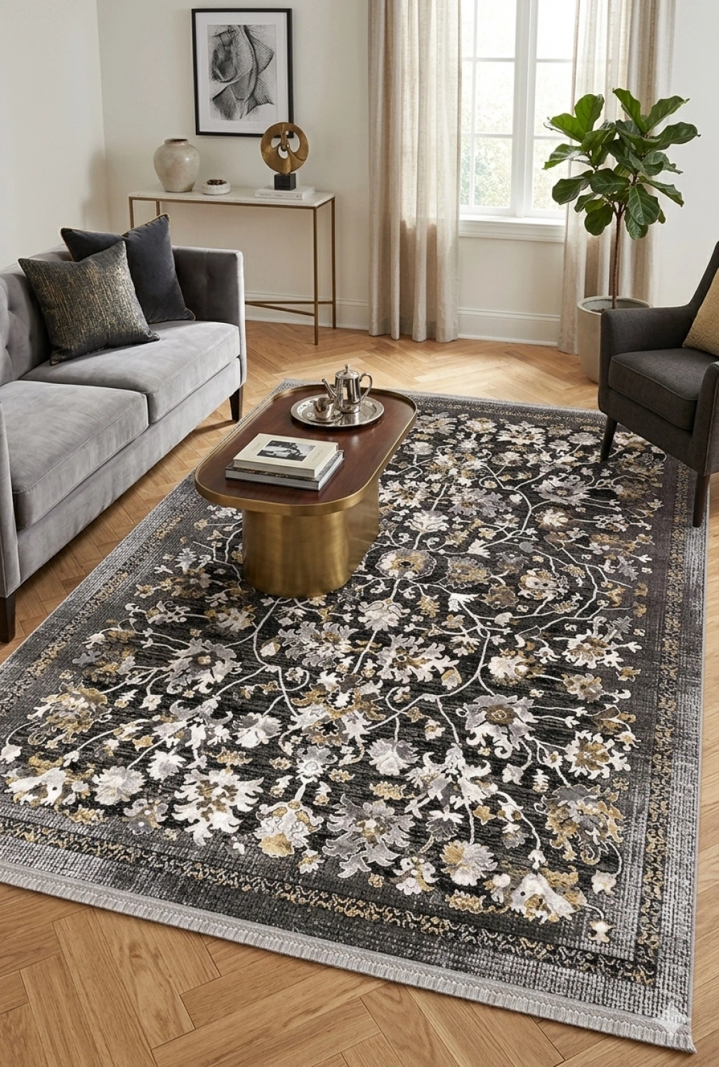 Mess Modern Dekoratif Yumuşak Dokulu Sisal Halı 3946 Gri Antrasit