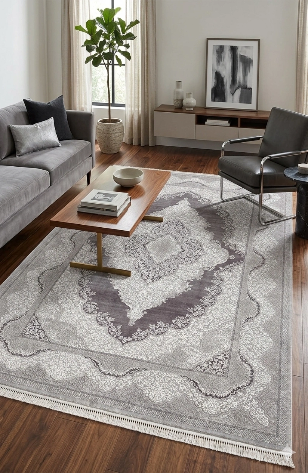 Mess Modern Dekoratif Yumuşak Dokulu Sisal Halı 3946 Gri Antrasit