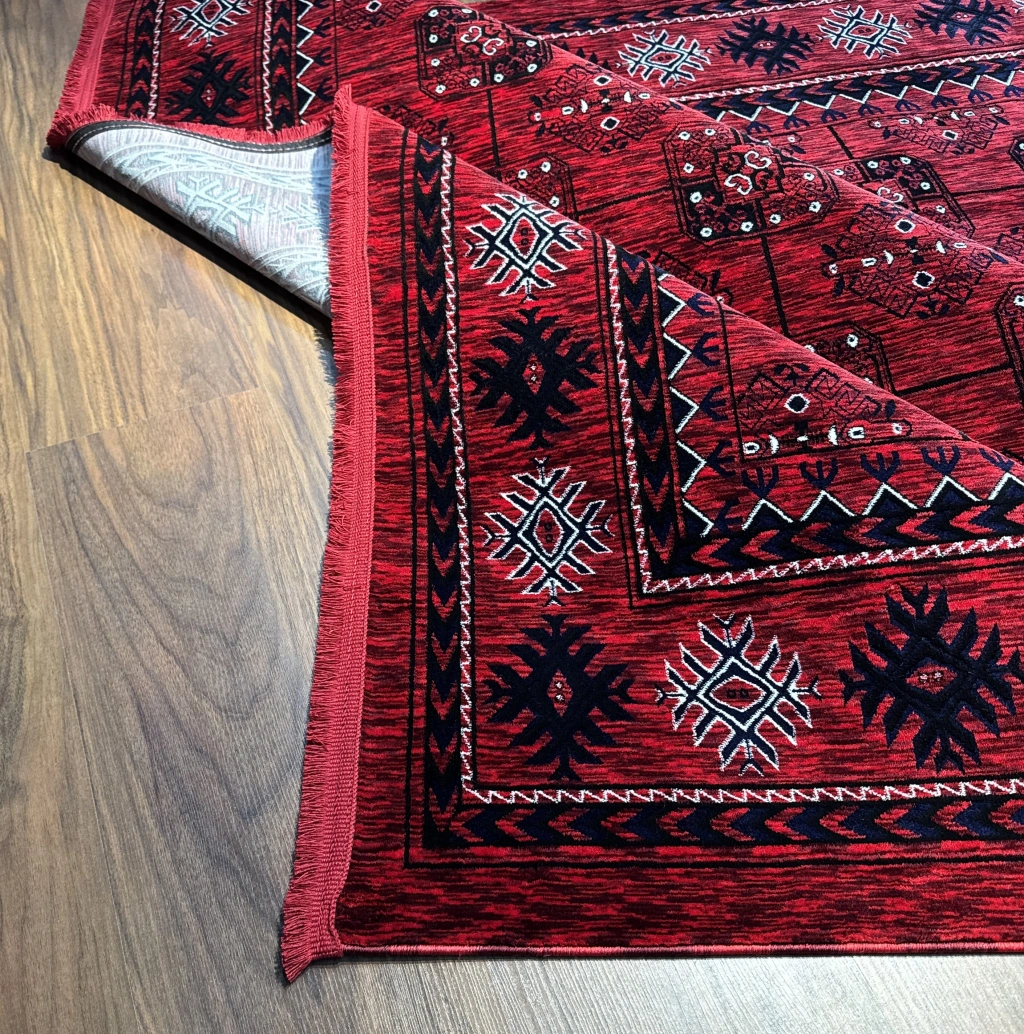 Filizon Mess Afkan Tarzı Akrilik Dokuma Halı 8110 Kırmızı, modern ve vintage tarzdaki ortamlara şıklık katıyor.