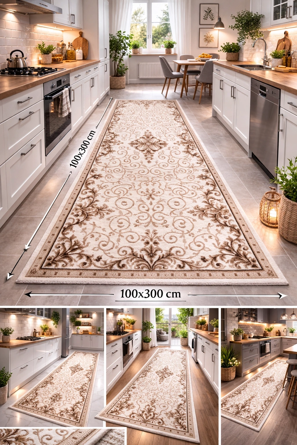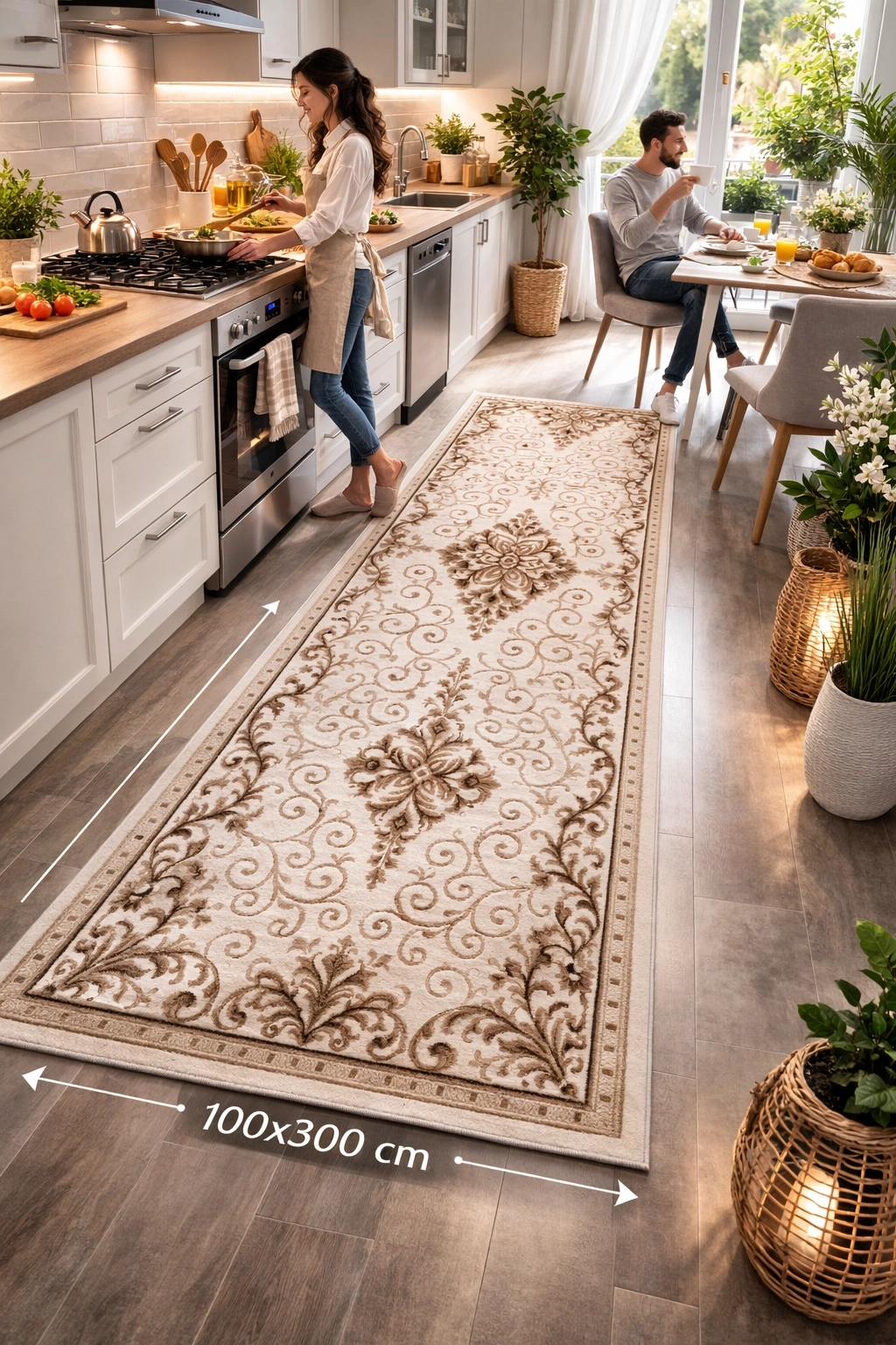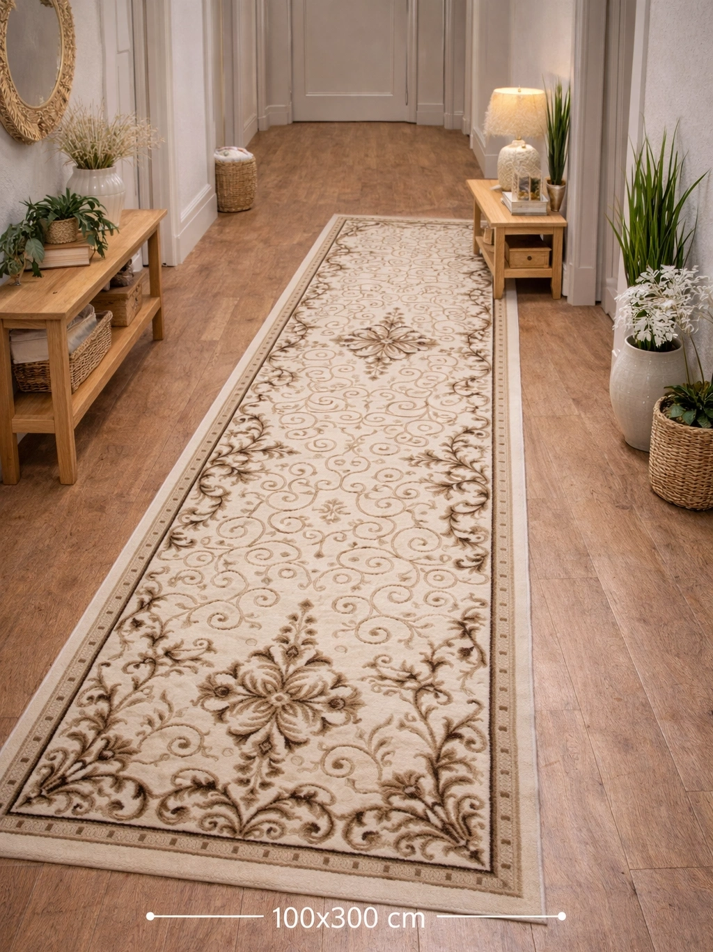 Dinarsu Halı Klasik Serisi %100 Akrilik 100 x 300 Bej Rengi