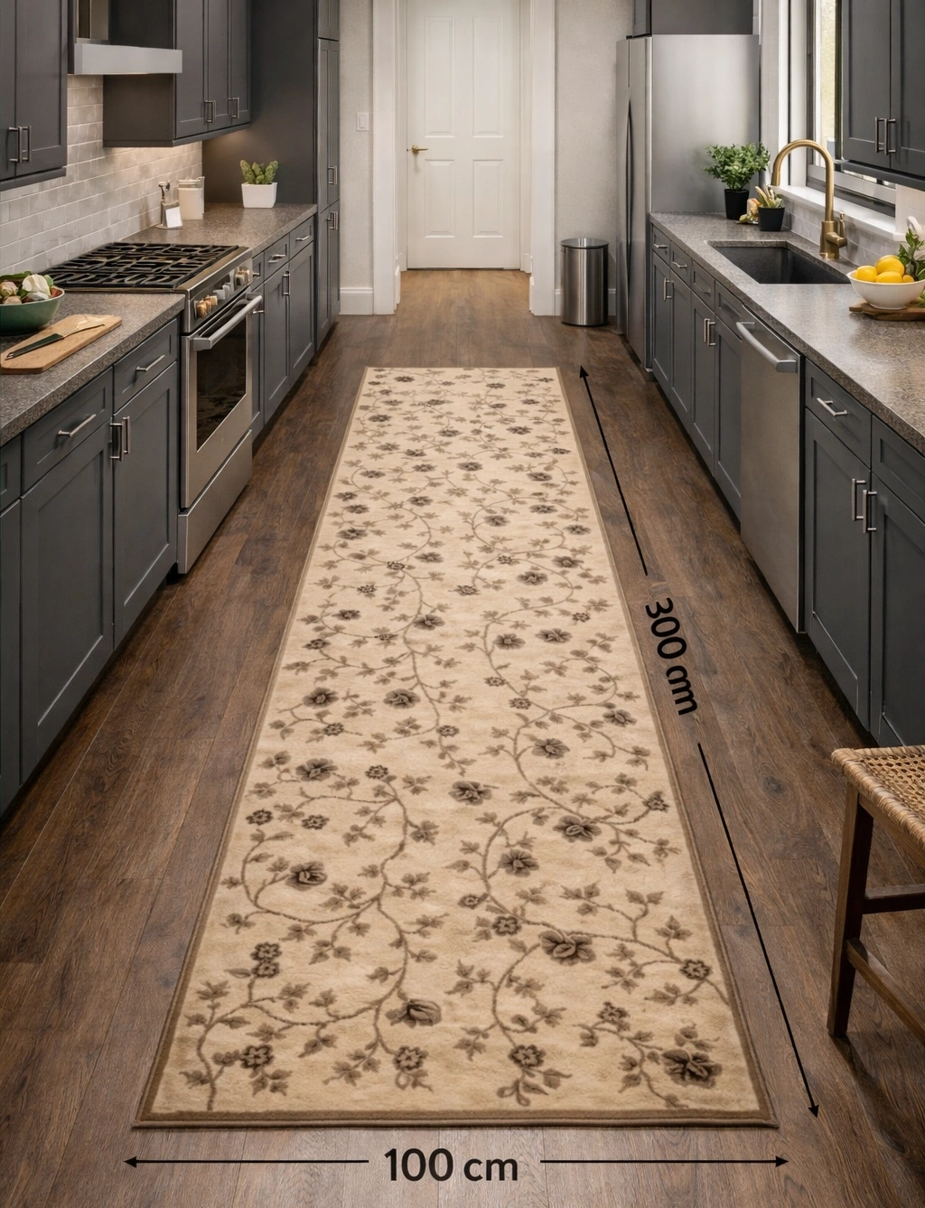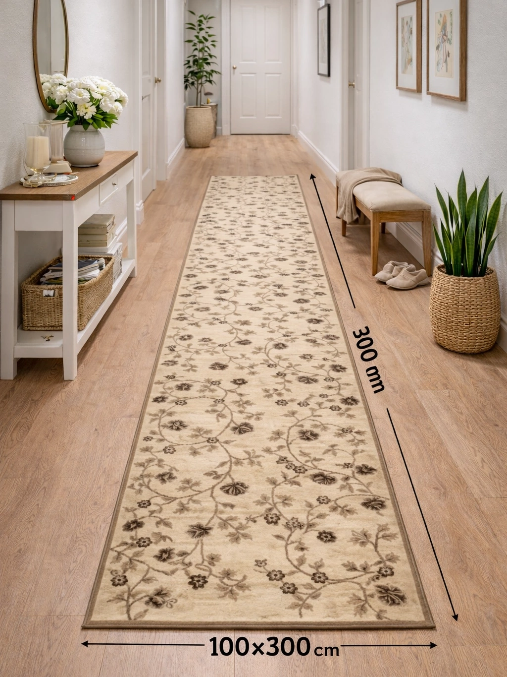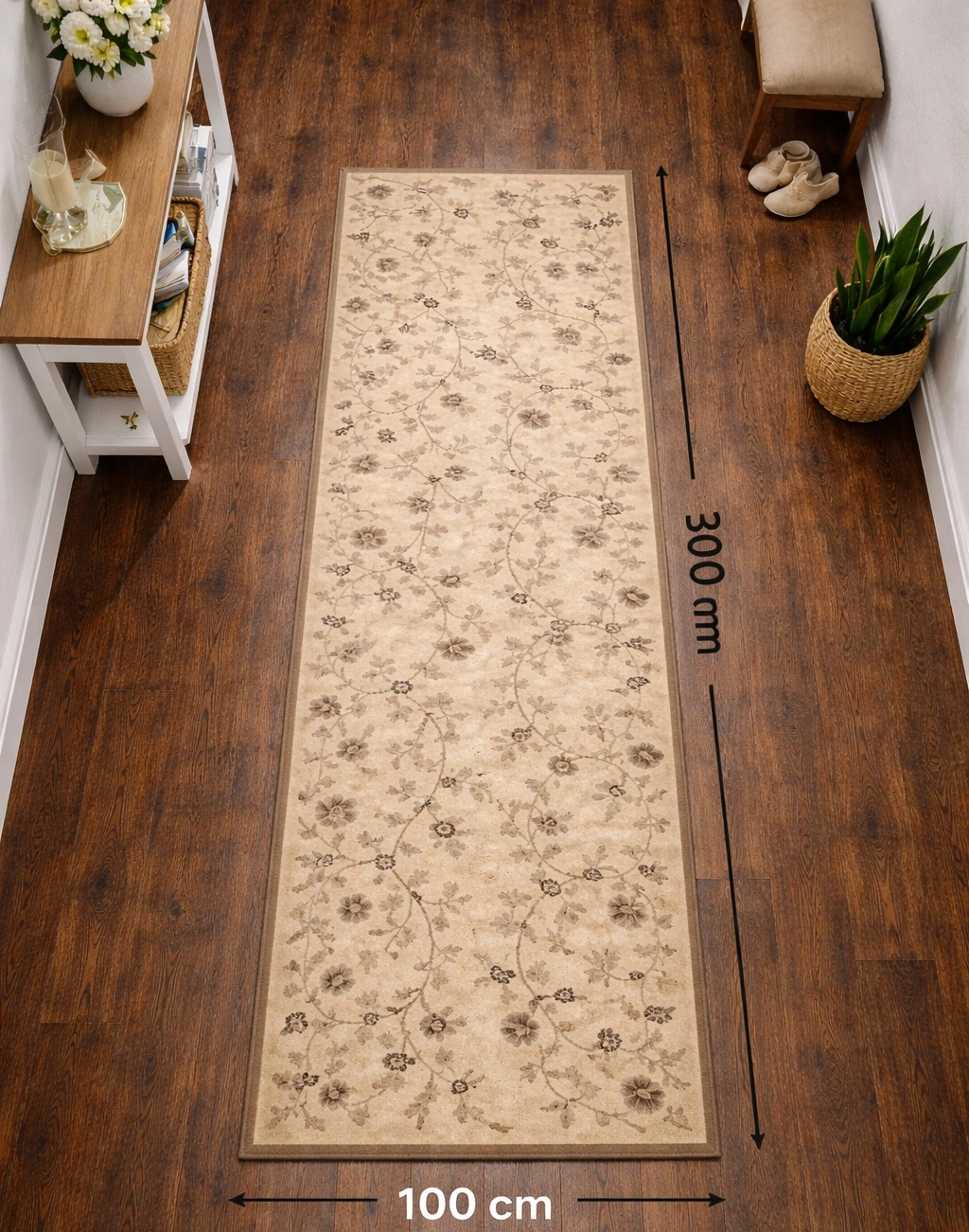 Dinarsu Halı Klasik Serisi %100 Akrilik 100 x 300 Bej Rengi