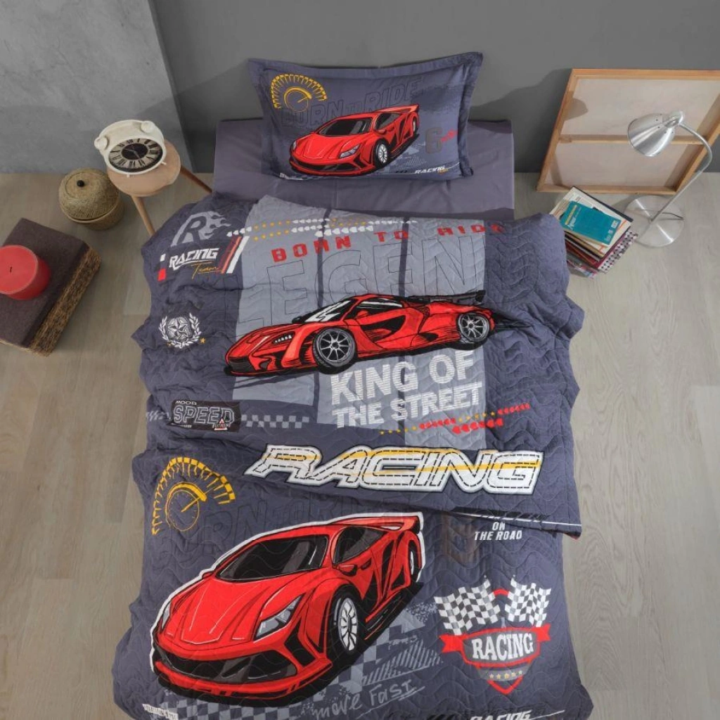 Ranforce %100 Pamuk Tek Kişilik Dört Mevsim Set Racing Team Mavi